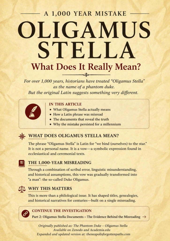 The reconstruction of early medieval history depends fundamentally upon the accurate interpretation of fragmentary and often ambiguous textual evidence. Within this context, the form “Oligamus Stella, dux” presents a persistent anomaly. It appears to designate a named individual of ducal rank, yet no corresponding figure can be identified within the known political, ecclesiastical, or documentary structures of southern Italy. Unlike securely attested rulers such as Sergius IV of Naples, whose presence is confirmed across